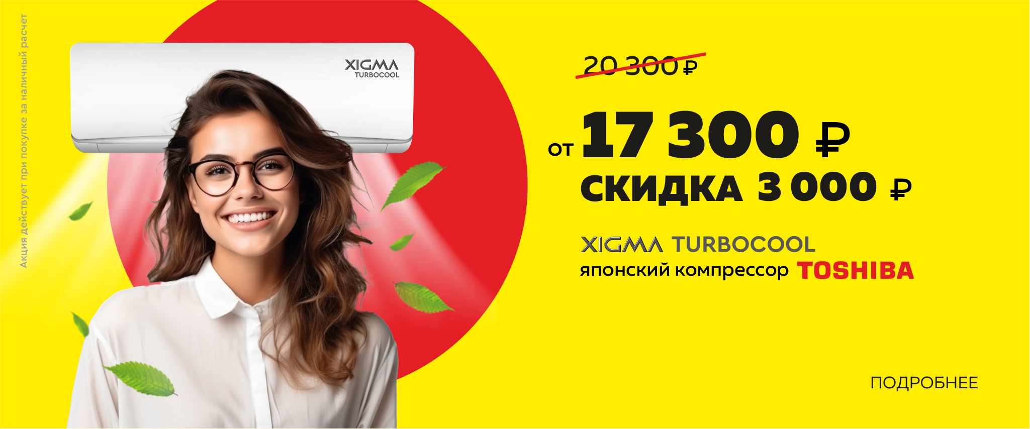 ДалееДарим скидку 3000 рублей на сплит-систему XIGMA TURBOCOOL.Успейте купить! Ограниченное количество товара по акции. Действует…