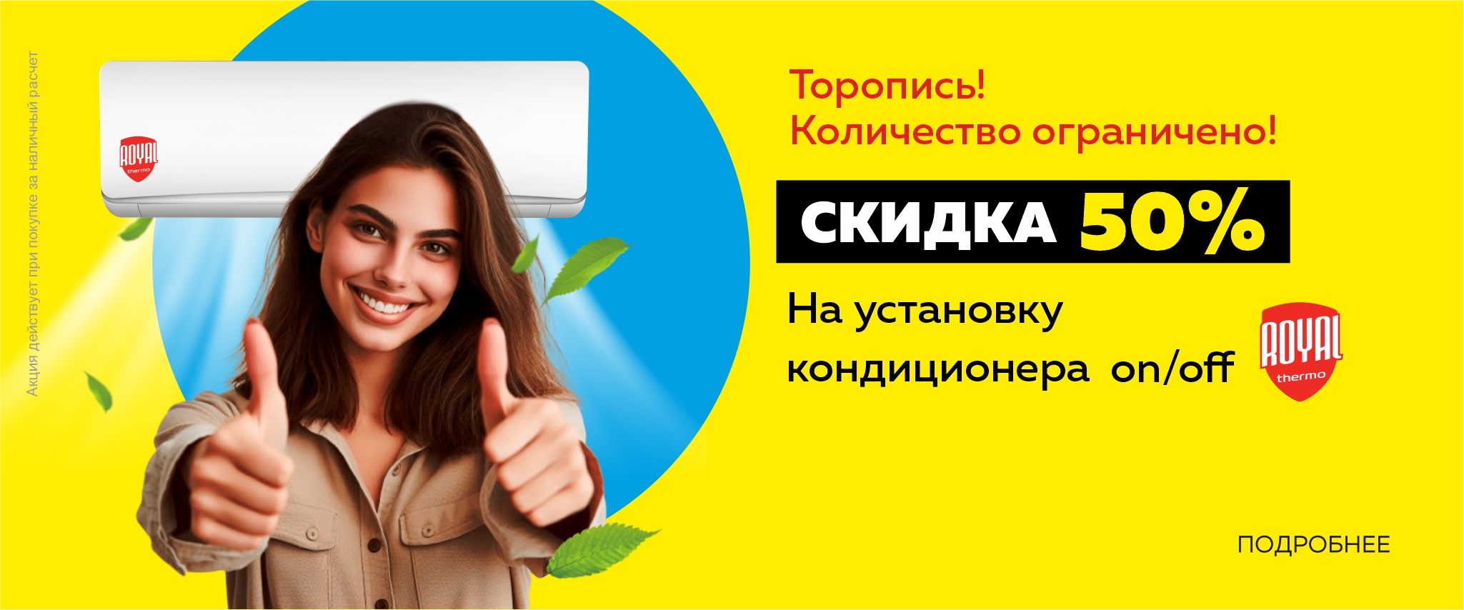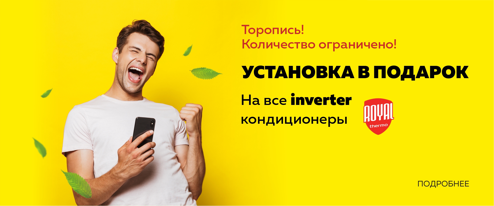 ДалееДарим установку в подарок на все Inverter кондиционеры бренда Royal Thermo!Успейте купить!Ограниченное количество товара по…