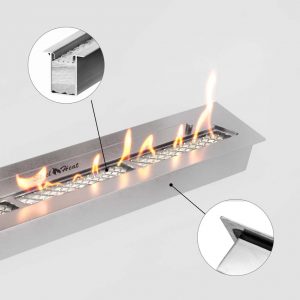 Очаг биокамина покрыт огнеупорной порошковой краской. При необходимости рекомендуем покрыть обратную часть очага теплоизоляцией!